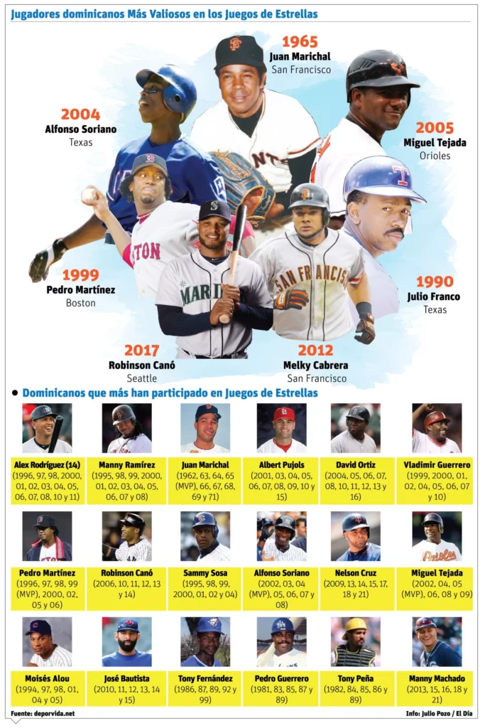 Los dominicanos tienen su historia en este Clásico, siendo los primeros en participar Juan Marichal y Felipe Alou, en 1962. También siete dominicanos se han llevado el premio de Jugador Más Valioso, siendo el primero Marichal en 1965.