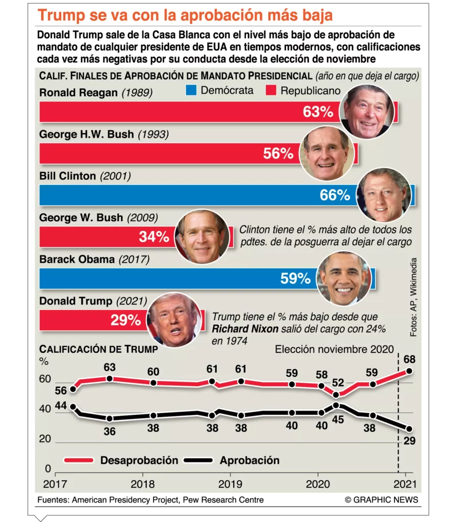 Trump romperá la tradición y no acudirá a la ceremonia de investidura de su sucesor, y abandonará hoy Washington con destino a su mansión privada en Palm Beach (Florida) horas antes de que Biden llegue a la Casa Blanca.