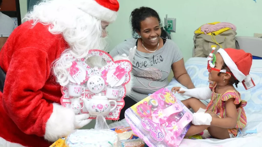 SANTO DOMINGO.-Dar y recibir una sonrisa a los niños del Hospital Robert Reid Cabral, su abrazo tierno y el agradecimiento de sus padres son las mayores motivaciones del Doctor Santa y sus duendes, que desde hace 5 años llegan con juguetes, comidas y diversión.