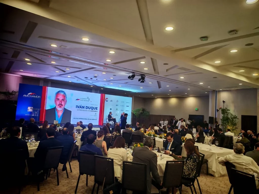Durante una intervención en el almuerzo mensual de la Cámara Americana de Comercio de la República Dominicana, Duque destacó que el país ha recibido a más del 10 % de su población en inmigrantes haitianos, ofreciéndoles acceso a servicios básicos y actuando con generosidad.