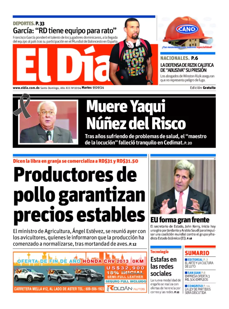 Edición Impresa Por El Día Digital Publicado: 9.09.2014 Tiempo de lectura: 0 m Compartir: Facebook Icon Twitter Icon Threads Icon Linkedin Icon WhatsApp Icon Telegram Icon Etiquetas El Día Digital Facebook Twitter Sitio Web Periódico independiente.