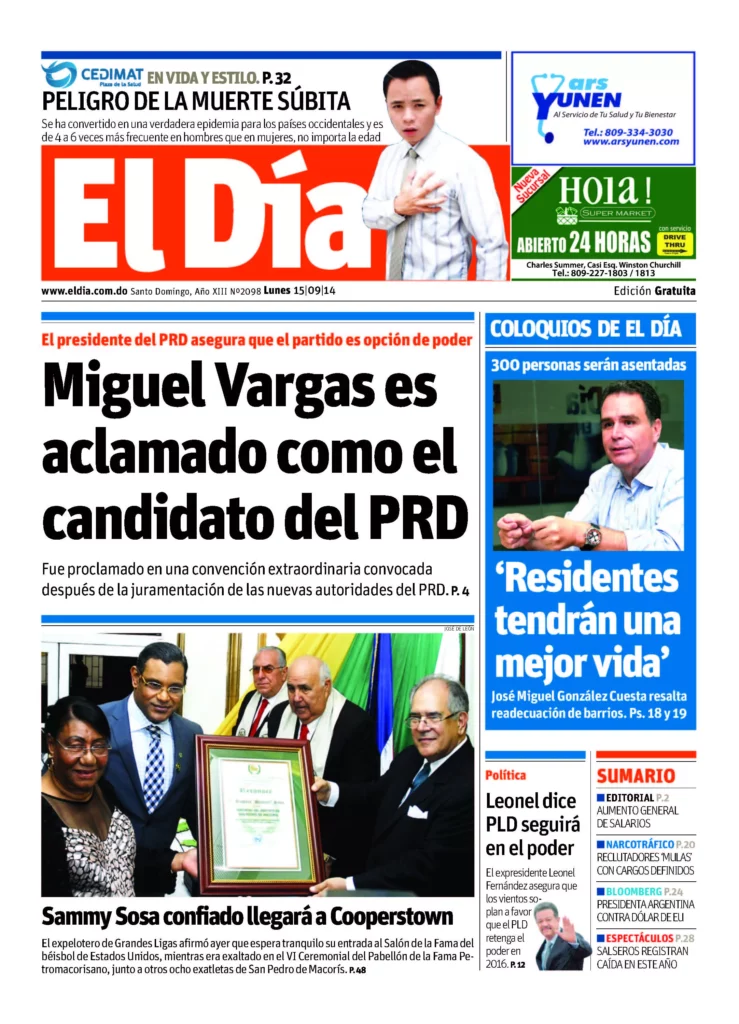 Edición Impresa Por El Día Digital Publicado: 15.09.2014 Tiempo de lectura: 0 m Compartir: Facebook Icon Twitter Icon Threads Icon Linkedin Icon WhatsApp Icon Telegram Icon Etiquetas El Día Digital Facebook Twitter Sitio Web Periódico independiente.