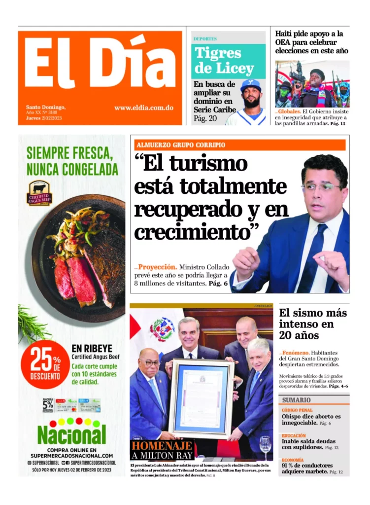 Edición Impresa Por El Día Digital Publicado: 2.02.2023 Tiempo de lectura: 1 m Compartir: Facebook Icon Twitter Icon Threads Icon Linkedin Icon WhatsApp Icon Telegram Icon Etiquetas Edición impresa El Día Digital Facebook Twitter Sitio-Web Periódico independiente. Artículos Relacionados 29 octubre, 2025 Edición impresa 29 de octubre 2025 28 octubre, 2025 Edición impresa 28 de octubre 2025 27 octubre, 2025 Edición impresa 27 de octubre 2025