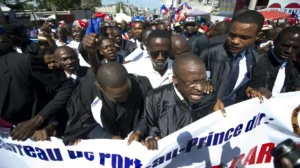 Grupos airados marcharon por las calles de Puerto Príncipe para dirigirse a la embajada dominicana.