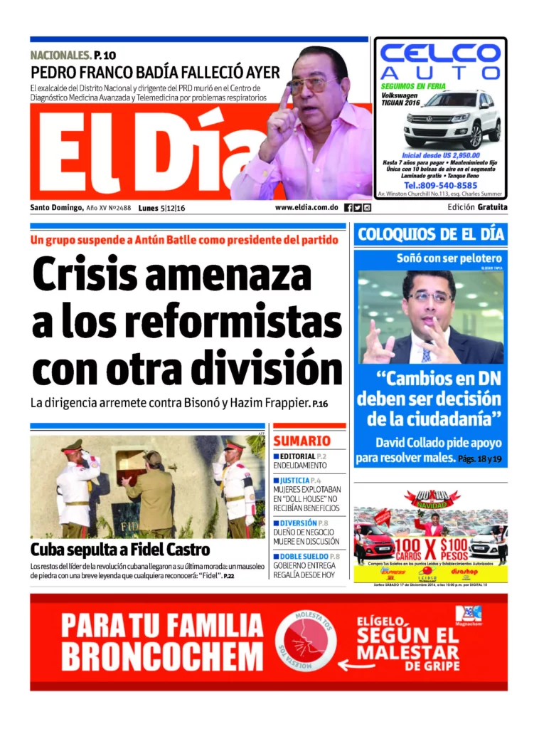 Av. San Martín #236, Santo Domingo, República Dominicana, Tel (809) 565-5581 redaccion@eldia.com.do