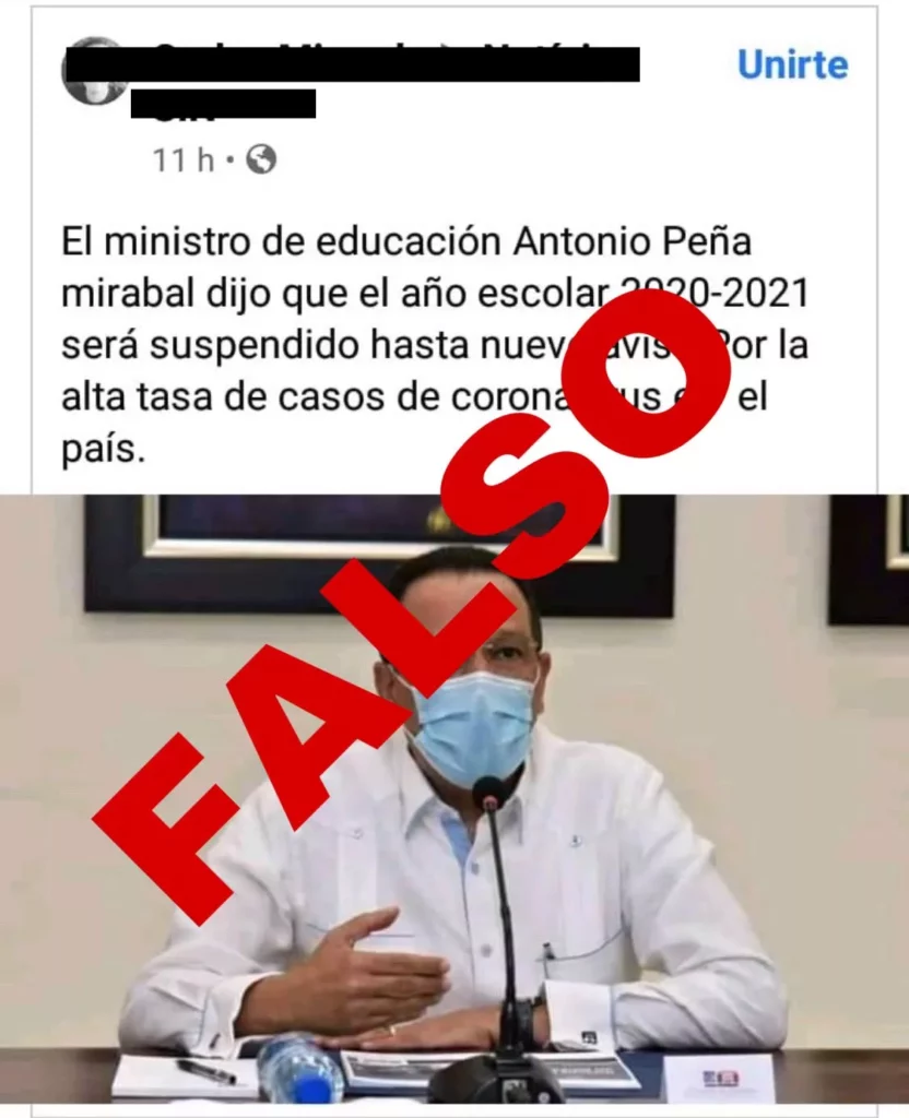 "MINERD desmiente información compartida en redes sociales en relación al nuevo año escolar. Ministro Peña Mirabal no se ha referido a este tema", indicó Educación en su cuenta de Twitter.