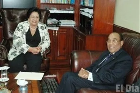 El diplomático haitiano y la señora Secretaria Ligia Amada Melo intercambiaron durante varios minutos ideas sobre la necesidad de desarrollar programas conjunto en materia de educación superior.