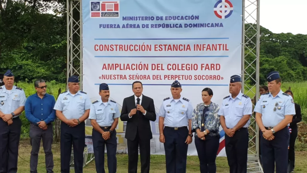 Santo Domingo.- El Ministro de Educación Antonio Peña Mirabal y el Comandante General de la Fuerza Aérea de República Dominicana Mayor General Piloto Richard Vásquez Jiménez dieron el primer palazo para dar inicio a la construcción de una estancia infantil y la ampliación del Colegio FARD «Nuestra Señora del Perpetuo Socorro» (NSPS) dentro de las instalaciones de la Base Aérea San Isidro.