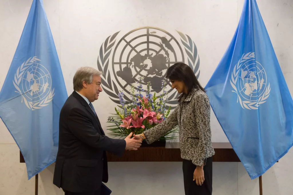 “Hay un nuevo EE.UU. en la ONU. (…) Van a ver cambios en la forma en la que trabajamos”, adelantó Haley, minutos antes de presentar sus credenciales diplomáticas ante el secretario general, António Guterres.