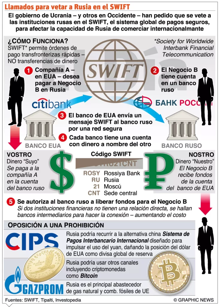 La Unión Europea alcanzó ayer un acuerdo político para excluir a varios bancos rusos del sistema de pagos interbancarios SWIFT y formalizó la paralización de las transacciones con el Banco Central de Rusia, un golpe sin precedentes a la economía del país en respuesta a la invasión de Ucrania.