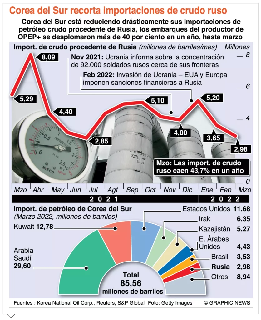 En tanto, los países europeos del G7 no pudieron anunciar sus propias sanciones debido a que la Unión Europea fue incapaz de llegar a un acuerdo este domingo para prohibir las importaciones de petróleo de Rusia debido a la dependencia de algunos socios del crudo de Moscú.