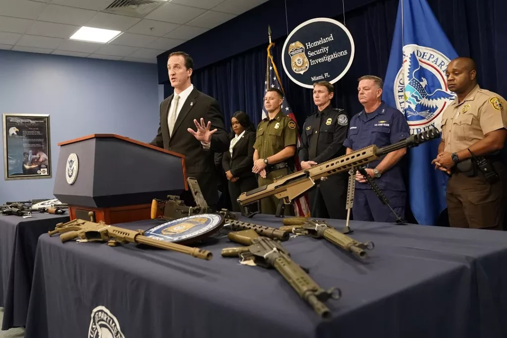 Durante una conferencia de prensa en Miami, Anthony Salisbury, el agente especial a cargo en esa ciudad del sur de Florida de la oficina de Investigaciones de Seguridad Nacional (HSI, por sus siglas en inglés), puso de relieve no solo el aumento del número de armas confiscadas en los últimos meses sino el calibre de las mismas.