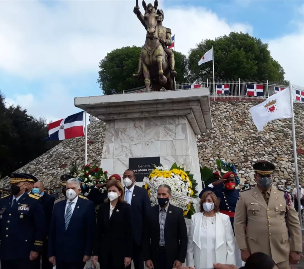El acto estuvo encabezado por la Vicepresidenta de la República, Raquel Peña, el presidente del Senado, Rafael Eduardo Estrella, el presidente de la Comisión Permanente de Efemérides Patrias, Juan Pablo Uribe, la Directora Regional de Educación de Santiago, Marieta Díaz, autoridades de diferentes instituciones y altos militares, quienes procedieron a colocar las ofrendas florales, al compás con el Toque de Ofrenda.