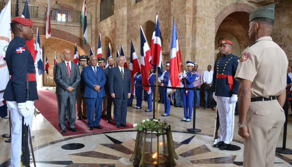 Rafael Pérez Modesto, quien forma parte de la Comisión Permanente de Efemérides Patrias, encabezó el acto junto al mayor general ® Héctor Lachapelle Díaz, el viceministro de educación Luis de León y familiares de los héroes, entre los que destacaron Francis Caamaño, hijo de Francisco Alberto Caamaño, y Juan Lora, hijo de Juan María Lora Fernández, el coronel del Ejército Arturo Manzueta, comandante constitucionalista y representantes del Comando de los Hombres Rana.