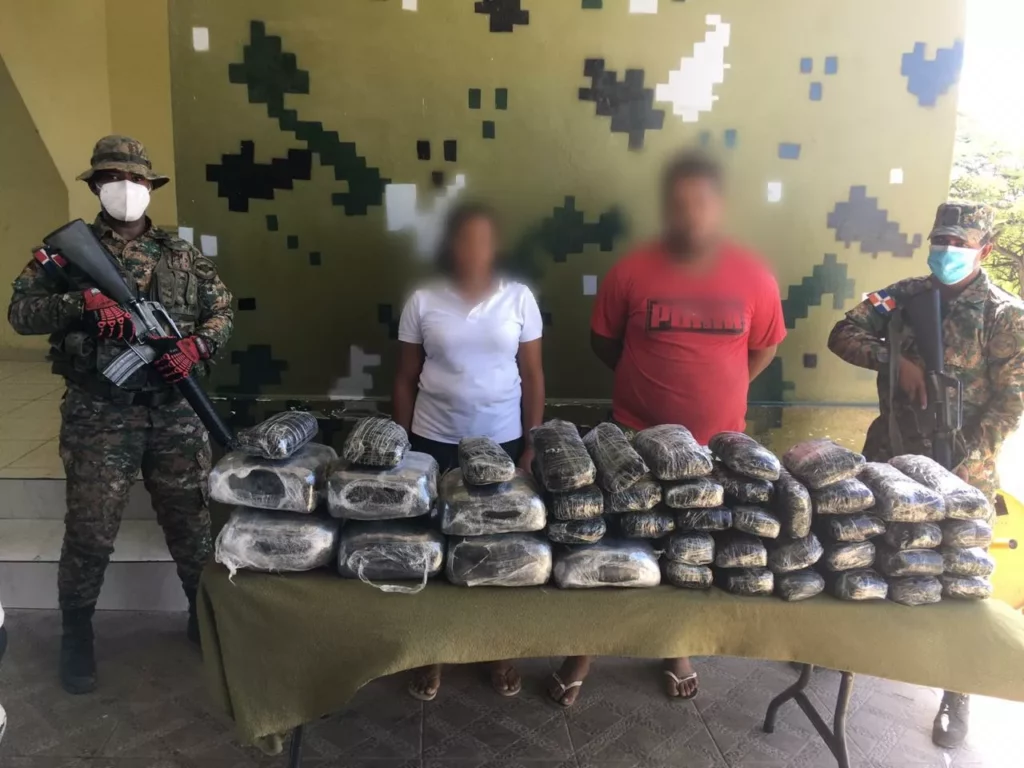 Los miembros de inteligencia y uniformados del Ejército, le incautaron la droga a Fernando Antonio Troncoso Santana, cédula 223-0139526-9 y Ángela Iris Lagares, cédula 223-0012049-4, ambos residentes en Los Frailes Primero, provincia Santo Domingo, mientras se desplazaban en la camioneta marca Escoda color blanca, placa L 042528.