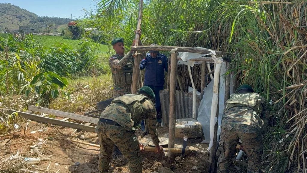 Santo Domingo.- Militares del Ejército de la República Dominicana y agentes de la Dirección General de Migración llevaron a cabo la destrucción de una letrina improvisada construida por haitianos en el municipio de Tireo, próximo a Constanza, en la provincia La Vega.
