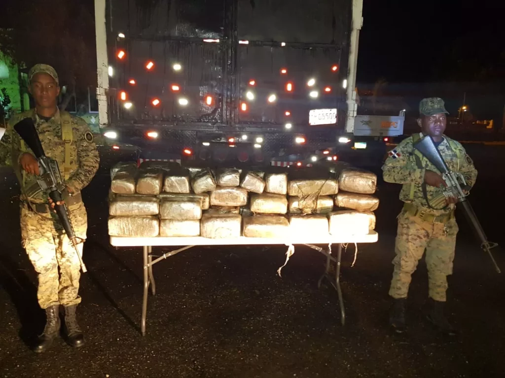 La droga, 48 paquetes con un peso de 32, 10 y 5 libras, fue incautada en un camión tipo furgón marca Forward, color blanco, placa TM05500, de procedencia haitiana, que fue detenido por los miembros del Ejército en el puesto de chequeo militar de Rio Blanco, ubicado en el municipio de Jimaní, provincia Independencia.