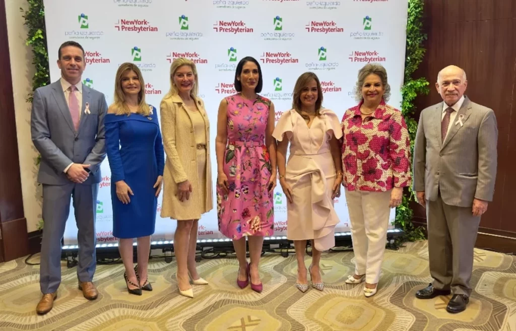 Esta conferencia organizada por la firma Peña-Izquierdo Corredores de Seguros con el apoyo del New York Presbyterian Hospital, contó con la presencia de la primera dama de la República, Raquel Arbaje, quien enfatizó que el cáncer de mama es la segunda causa de muerte en el país.