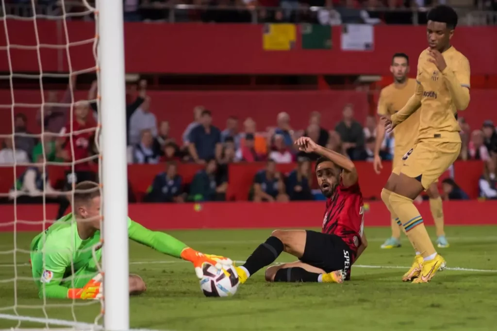 El partido estaba igualado en Son Moix cuando apareció el máximo realizador del campeonato para poner en ventaja a su equipo. Lewandowski lo hizo todo para fabricarse el espacio y batir al serbio Predrag Rajkovic. Tras recibir un pase de Ansu Fati, recortó a Valjent para marcar con un derechazo muy ajustado.