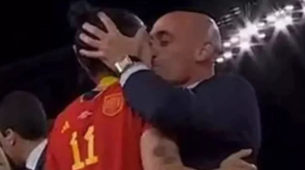 Rubiales dio este domingo un beso en la boca a la futbolista española tras agarrarla por la cabeza, durante la entrega de medallas tras proclamarse España campeona del mundo de fútbol femenino al imponerse por 1-0 a Inglaterra en Sídney (Australia).