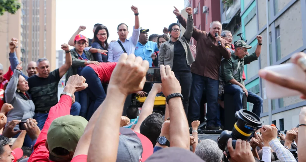 “El mensaje es claro, que no se equivoquen con Venezuela, les hemos derrotado todos los golpes de Estado (…) con las manos de nuestros trabajadores y nuevamente los vamos a derrotar”, aseguró Rodríguez en una arenga a un grupo de manifestantes en Ciudad Guayana, capital del estado Bolívar (sur).