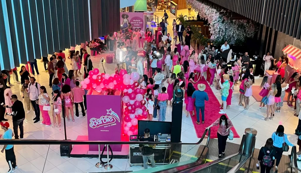 Luciendo sus atuendos, los invitados se pasearon entre Barbie y Ken, posaron en la caja de la muñeca y otros puntos para fotos, además, de regalos y sorpresas desde el primer nivel de la plaza hasta la sala de cine.