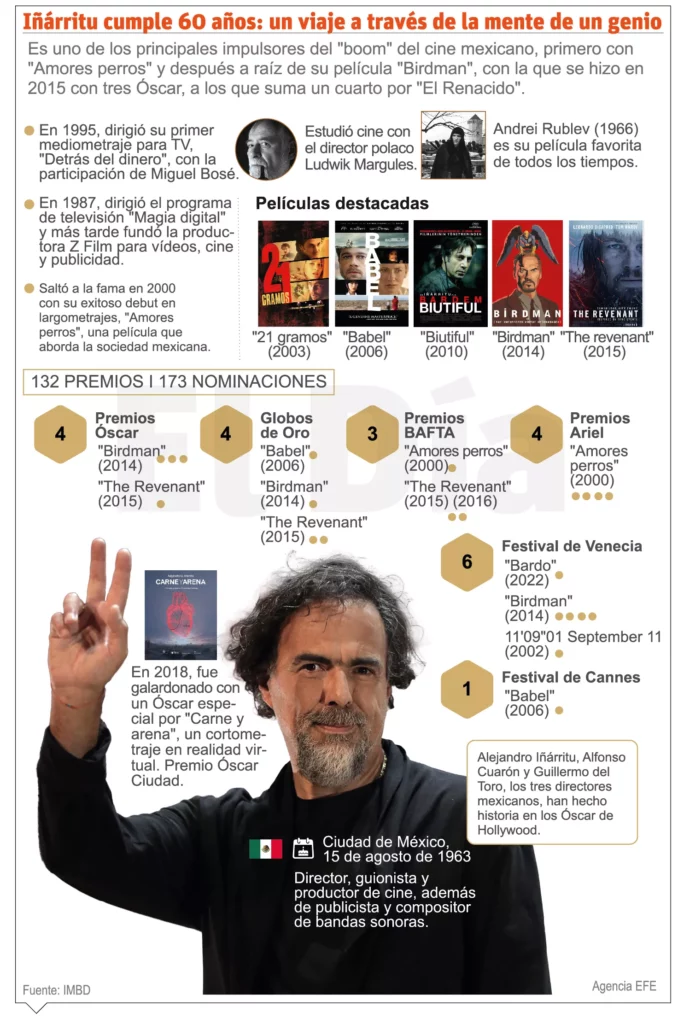 Es uno de los principales impulsores del "boom" del cine mexicano, primero con “Amores perros” y después a raíz de su película “Birdman”, con la que se hizo en 2015 con tres Óscar, a los que suma un cuarto por “El renacido”.