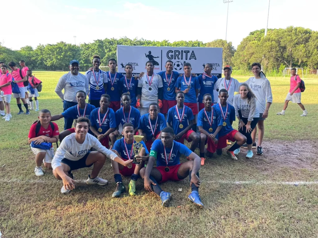SANTO DOMINGO.-El reputado club Dominguito hizo valer su condición de poderoso para coronarse campeón invicto del Distrito Nacional en el primer torneo de fútbol Fundación Grita Gol, con un aplastante marcador (5-1) contra el Enmanuel FC en la final celebrada en el Parque del Este. El certamen clasifica a los mejores de cada región hacia la Copa de Campeones 2021.