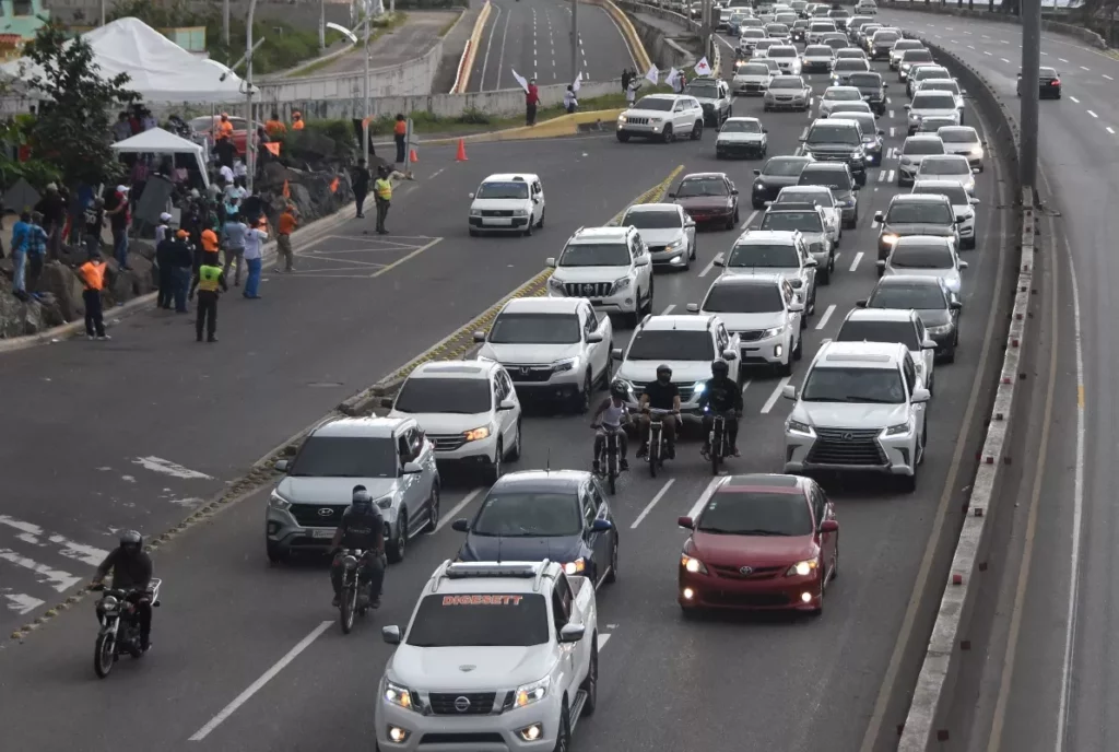 La Dirección General de Seguridad de Tránsito y Transporte Terrestre (Digsett), inició los tradicionales carreteos a las dos de la tarde, iniciando por el Este, desde San Pedro; por el Norte, desde Santiago, y por el Sur desde Baní, para mantener controlada la velocidad de los miles de personas que retornaban a la capital desde las provincias.