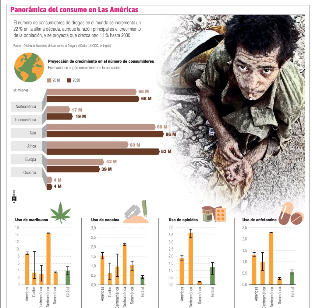 AGENCIAS.-Alrededor de 275 millones de personas consumieron drogas durante el último año a nivel global, revela el informe anual de la Oficina de la ONU contra la Droga y el Delito.