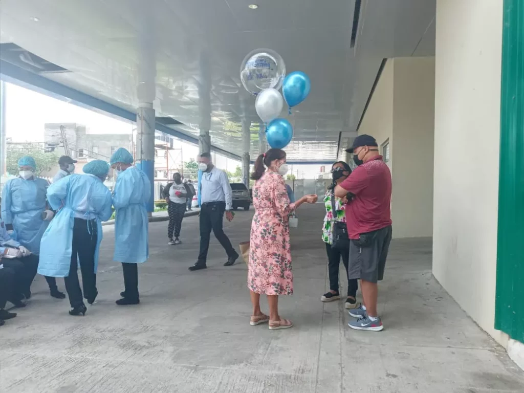 Santo Domingo.- Ana Vargas llegó esta mañana a la Ciudad Sanitaria Luis Eduardo Aybar, con globos azules, un gris y uno transparente que tenía escrito un "Happy Birthday, Héctor Ulloa".