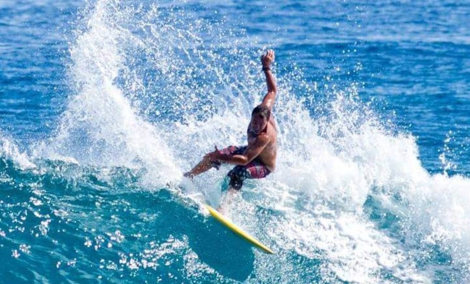 Su genealogía acuática arranca en 1974, cuando tenía 11 años. Primero fueron las tablas con ruedas, las piscinas vacías que se convierten en olas de concreto, y luego Güibia, donde Federico Almonte le prestó la primera tabla.