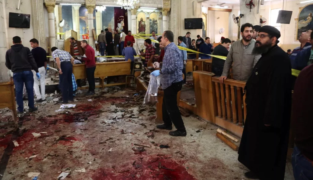 “La explosión tuvo lugar en las primeras filas, cerca del altar durante la misa”, indicó el general Tarek Atiya, adjunto del ministro del Interior encargado de las relaciones con la prensa. Unas imágenes difundidas por el canal de televisión privado Extra News mostraban el suelo y las paredes blancas de la iglesia cubiertos de sangre, y bancos de madera destrozados.