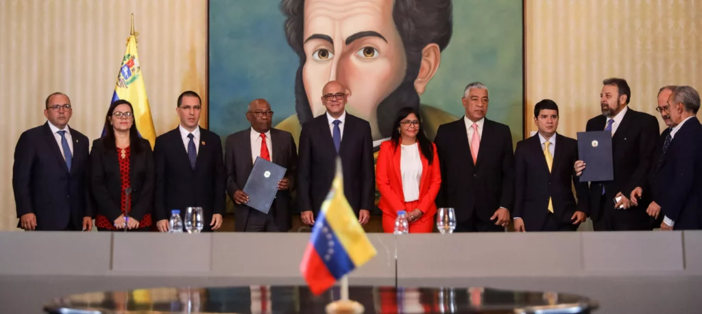 Por parte del Gobierno, firmaron el acuerdo el ministro Jorge Rodríguez, la vicepresidenta Delcy Rodríguez, el canciller Jorge Arreaza, y el ministro de Educación, Aristóbulo Istúriz.