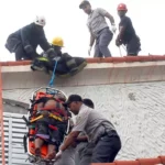 Brigadas de los bomberos y del 911 le ayudaron a bajar del techo.