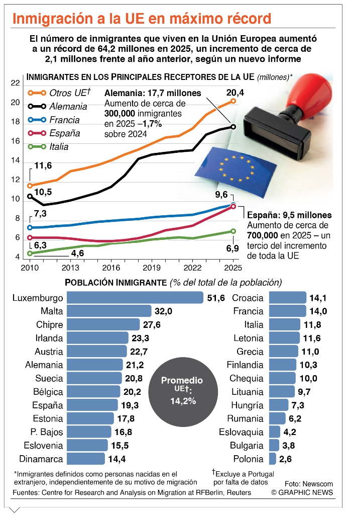 En término de llegadas, la migración de la región de Asia Pacífico hacia Europa constituyó el 30 % de las entradas irregulares a Europa en 2025, frente a un 20 % el año anterior.
