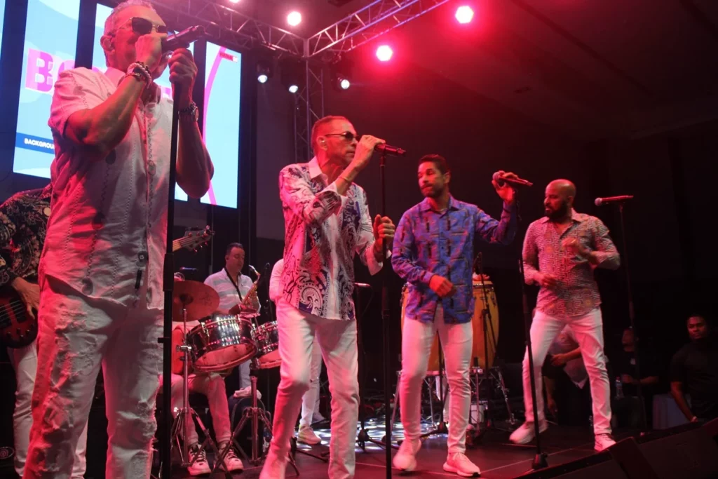 Minutos después Los Hermanos Rosario, una de las agrupaciones más emblemáticas del merengue dominicano, puso de pie al público, que no abandonó la pista de baile durante toda su presentación.