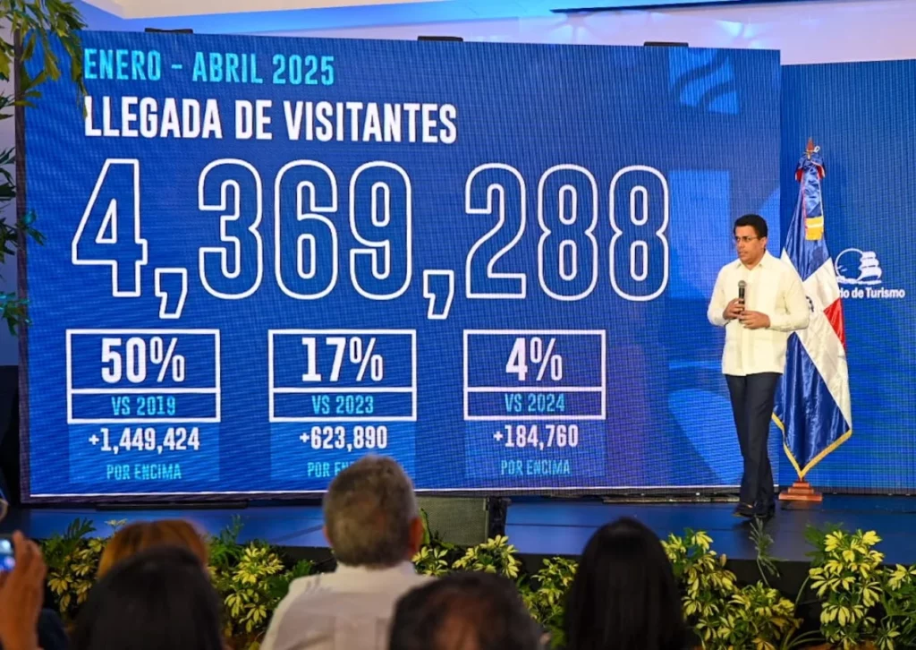 El ministro Collado dijo que en el primer cuatrimestre de este año el país recibió 4,369,288 visitantes, otra cifra récord en la historia del turismo.