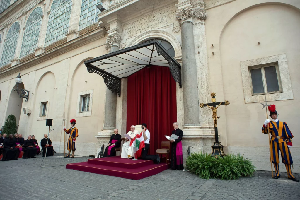 Unos 500 fieles asistieron a la audiencia en el patio vaticano de San Dámaso.