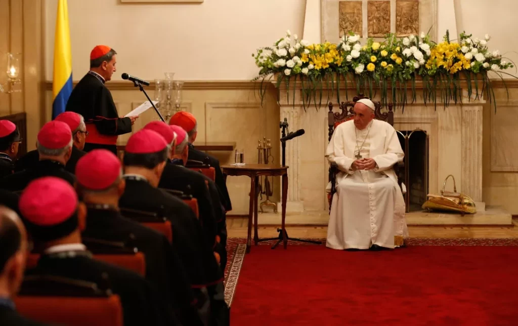 Bogotá.- El papa Francisco se reunió hoy en la Nunciatura de Bogotá con el comité directivo del Consejo Episcopal Latinoamericana (Celam), a cuyos miembros invitó a “educar al perdón y a la reconciliación" El papa aprovechó la ocasión de su visita a Colombia, que comenzó este miércoles y terminará el domingo, para reunirse con el Celam, que tiene su sede en Bogotá aunque por motivos de tiempo lo hizo en la Nunciatura.