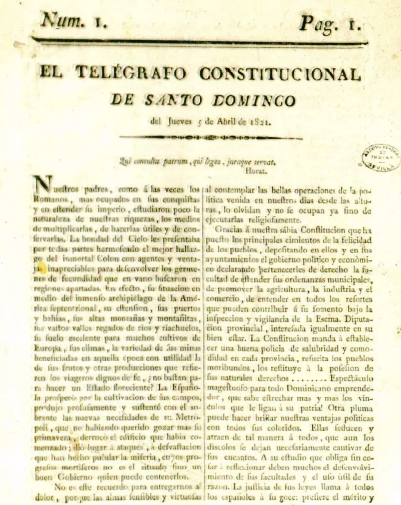De esta forma, y entre tribulaciones, llegamos al 1821, año en el que nace El Telégrafo Constitucional de Santo Domingo, considerado como el “primer esfuerzo del periodismo impreso en tierra dominicana”.
