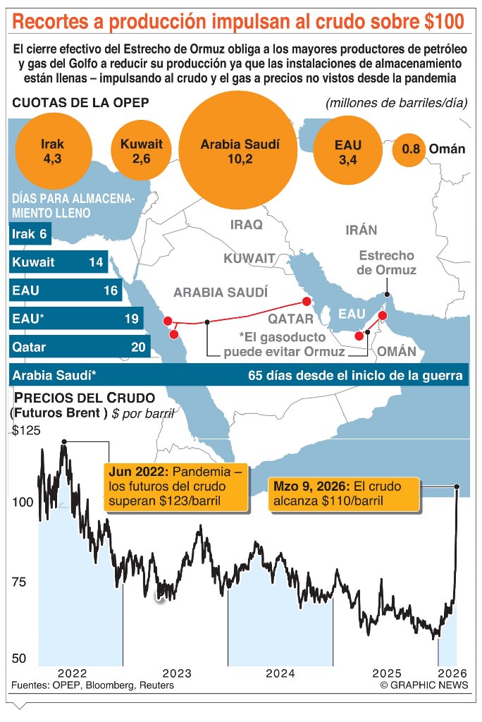 “Cuanto más tiempo permanezca cerrado el estrecho de Ormuz, más se reducirá la producción de la región del Golfo”, señaló, apuntando a un posible déficit en la oferta de crudo si esta ruta sigue cerrada virtualmente durante mucho tiempo.