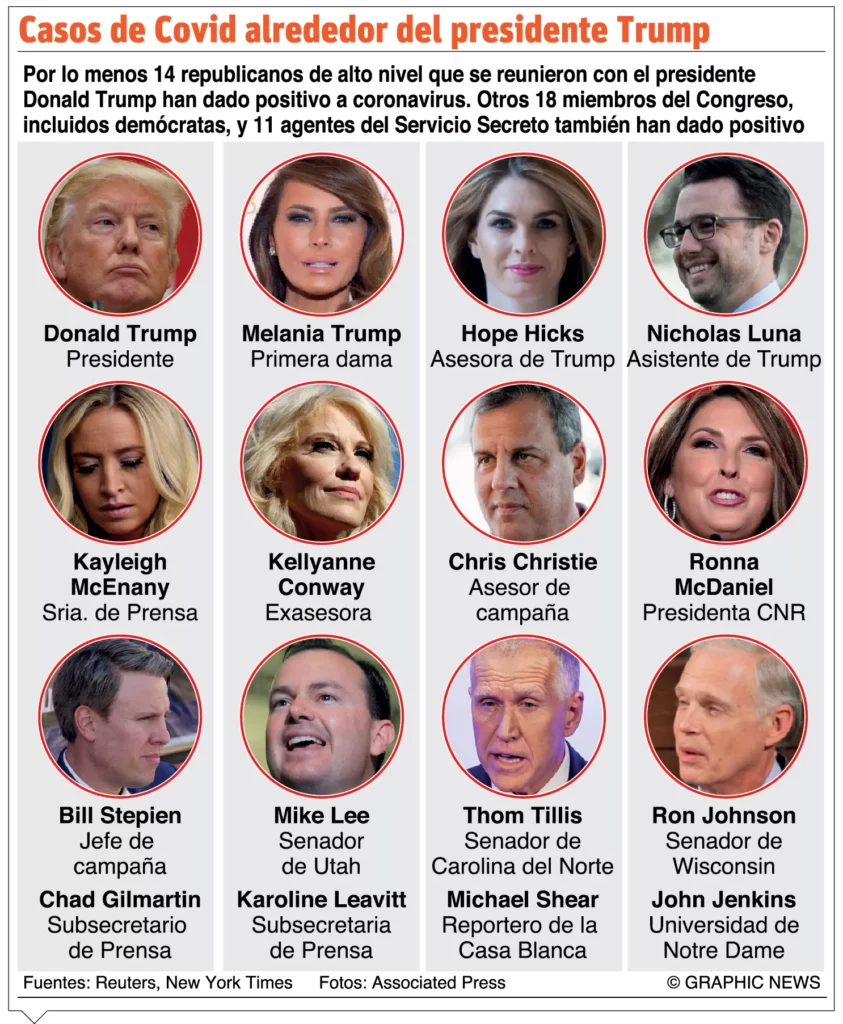 El jefe de Estado, quien el jueves pasado dio positivo por la enfermedad junto a su esposa, Melania Trump, mantiene una combinación de tratamientos potentes como el cóctel experimental de anticuerpos de la farmacéutica Regeneron que le fue suministrado el viernes; el antiviral Remdesivir y el esteroide dexametasona.