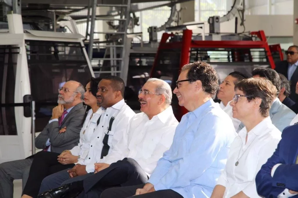 Durante el acto, Danilo Medina estuvo acompañado del ministro de Hacienda, Donald Guerrero; del director ejecutivo de URBE, José Miguel González Cuadra; y de Sor Primitiva Rubio, directora de la Escuela Ave María cuyos estudiantes y personal serán parte de los beneficiarios del Teleférico.