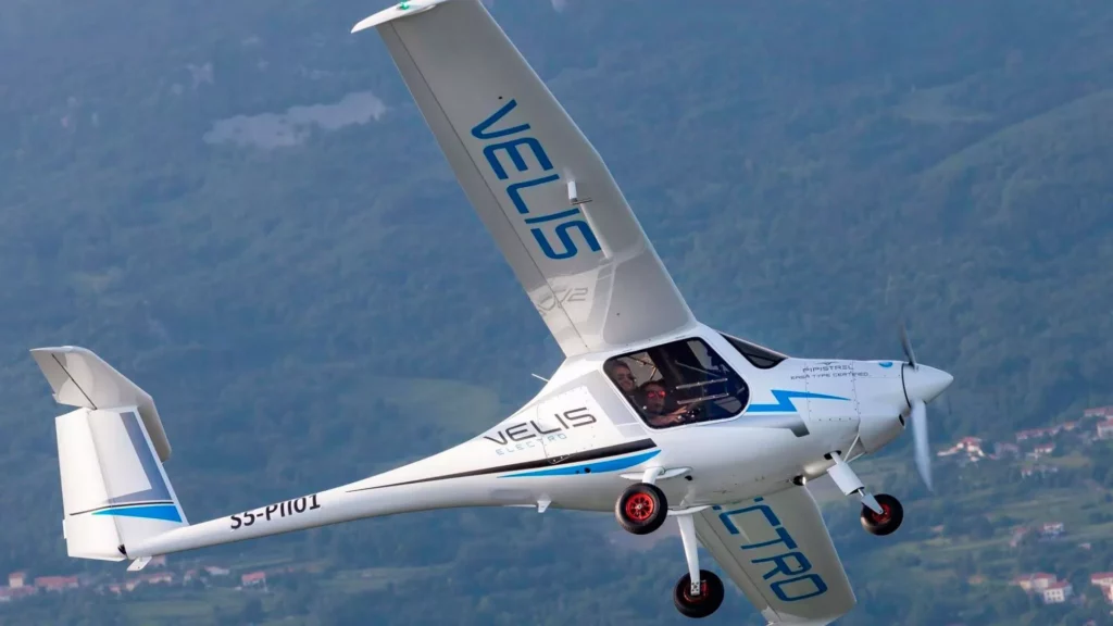 El Velis Electro es un ultraligero biplaza de sólo 6,47 metros de longitud, una envergadura de alas de 10,71 metros y una capacidad de carga de 172 kilos durante 50 minutos de vuelo, capaz de alcanzar una velocidad máxima de 200 kilómetros por hora.