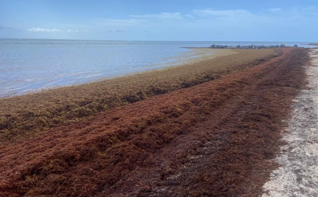 Sin embargo, en el 2022 se calcula que llegaron 64 mil toneladas de alga (sargazo) en la región, y se estimó que en la época de verano 24 millones de toneladas más de sargazo se instalaron en las playas del Caribe.