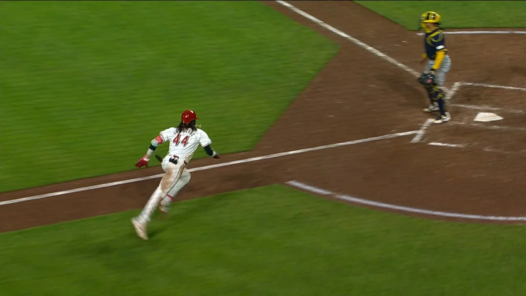 Con una diferencia de 10-8 en la novena, Milwaukee tenía corredores en las esquinas con dos outs, pero Alexis Díaz se apuntó su segundo salvamento retirando a Rhys Hoskins con un elevado al jardín derecho.