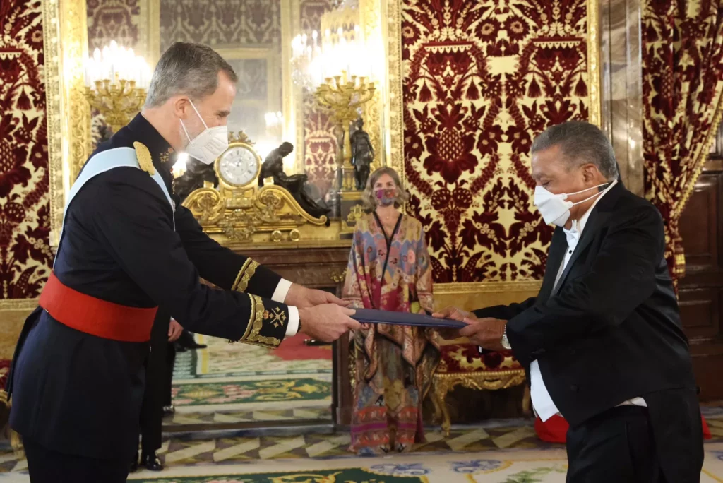 SANTO DOMINGO.– El rey Felipe VI de España recibió las cartas credenciales del nuevo embajador de República Dominicana en España, Juan Bolívar Díaz en un acto celebrado en el Palacio Real de Madrid.