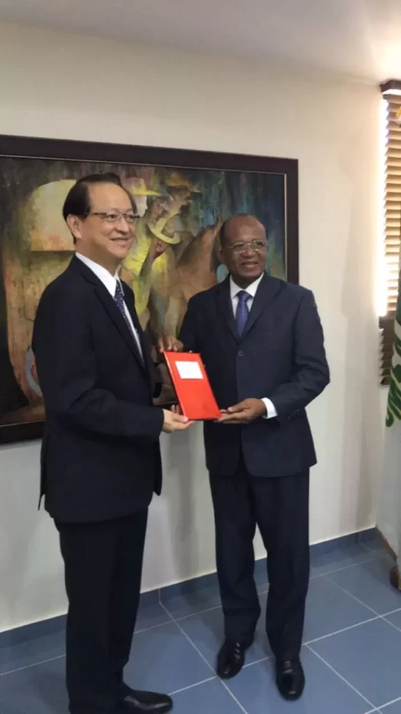 Santo Domingo.-El director de la Oficina Metropolitana de Servicios de Autobuses (OMSA), Héctor Mojica, recibió la visita de cortesía del embajador de la República China (Taiwán), Valentino Tang, quienes intercambiaron ideas e informaciones de los sistemas de transportes de ambos países.
