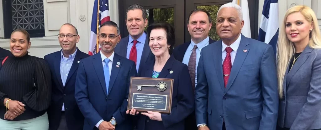 En su primera visita oficial a Massachusetts y Rhode Island, la diplomática también recibió un reconocimiento especial “en gratitud y admiración por su arduo trabajo y dedicación al servicio público” por parte del gobernador de Rhode Island, Daniel McKee y la vicegobernadora Sabina Matos, de origen dominicano. Sonia Guzmán agradeció ambas distinciones y dijo que estos encuentros fueron muy importantes.